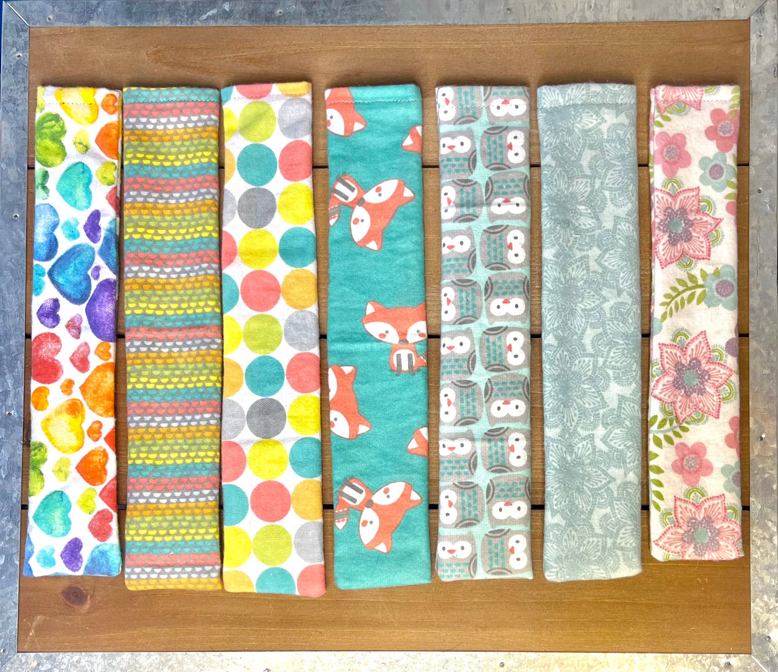 Great Grandma and friends sew each one so none of them will be like another! We are rolling out fun, sweet and silly fabric patterns all the time! Our pictures are just a small sample of what we have.