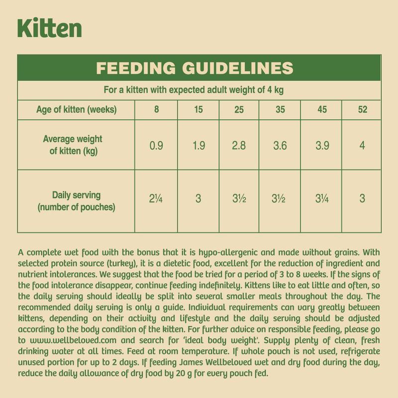 Give your kitten the best start in life with James Wellbeloved® Kitten Turkey in Gravy Wet Cat Food – a complete, hypoallergenic recipe made right here in the UK with over 30 years of expertise. Crafted from simple, natural ingredients and free from common allergens, each pouch helps support sensitive young tummies while delivering the taste kittens love.