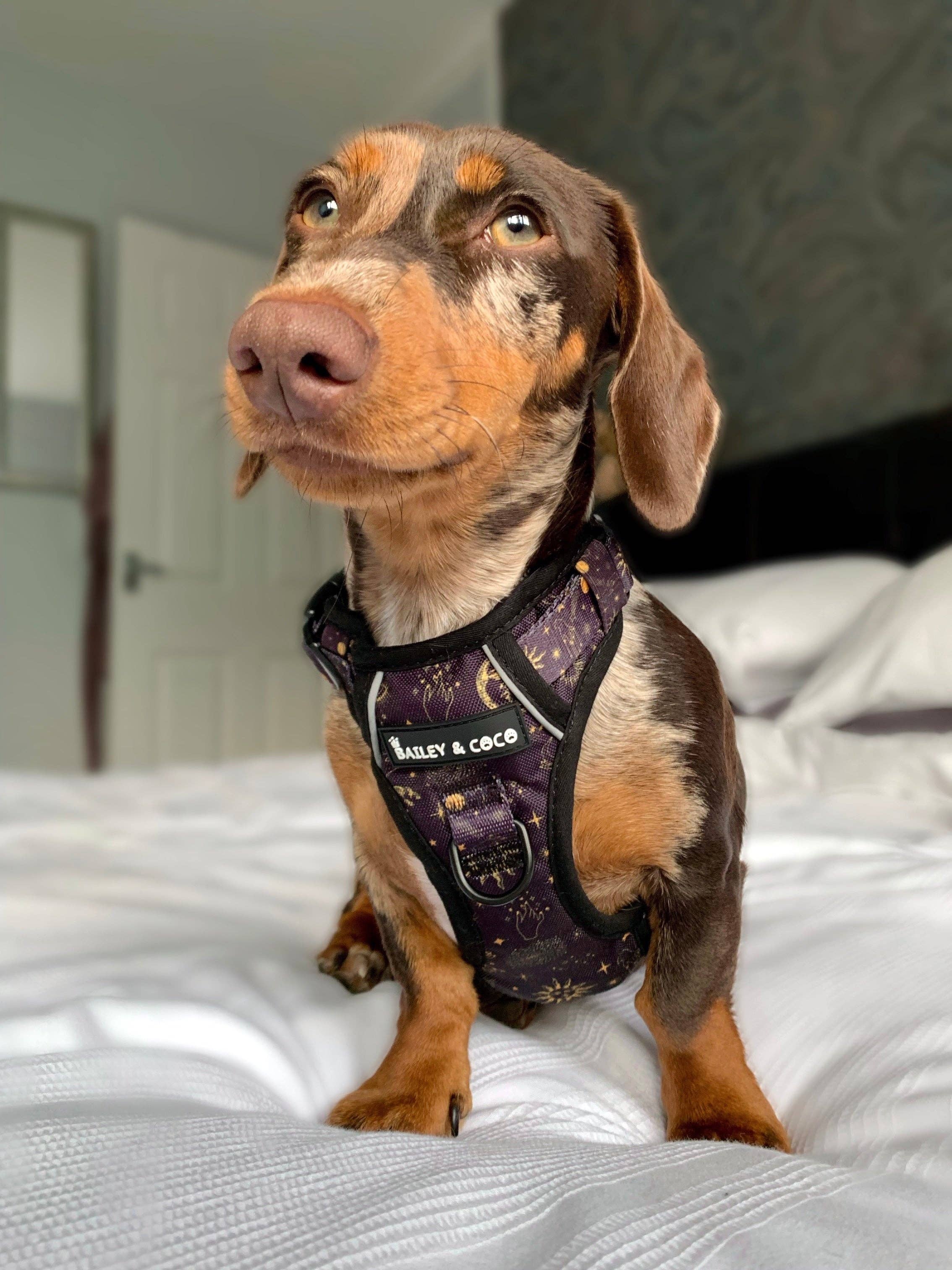 “You are my sun, my moon, and all my stars…” ✨ Introducing the dreamy Celestial Dog Harness from Trail & Glow® – a cosmic blend of style, comfort, and practicality. With its magical starry-night design, this harness looks stunning on all coat colours and is perfect for both boys and girls. Whether it’s a crisp winter walk or a sunny summer adventure, this design is truly seasonless and timeless.